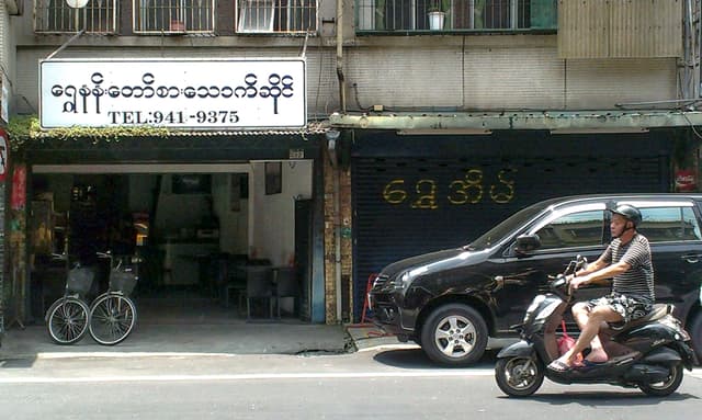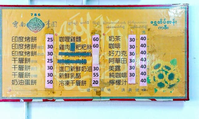 這個區域是很多緬甸華僑在台灣半輩子的居所,華新街路口的路牌還特別寫了「南洋觀光街道」。街道兩旁滿滿都是南洋小吃館,在前段街左邊的兩家緊鄰店前徘徊,無法判斷該吃菜單和價位幾乎一模一樣的哪一家。