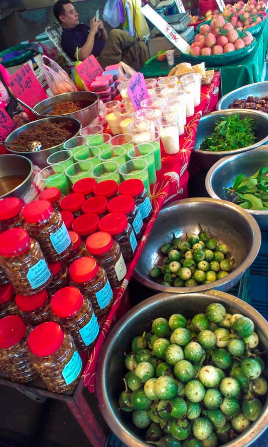 市場在街道上右轉的某條巷子裡,卻和緬味十足的華新街上完全不同。這還是一個台灣味的傳統市場,只有少數兩三個攤位是緬甸華僑開的。剛才熱熱烈烈的浸身在印緬風情裡,現在乍處台灣市場,忽然感到失落。與我一出南勢角捷運站,看到一堆即便我平時狂吃狂吃的中華麵食,卻還是沒有胃口的感覺類似。