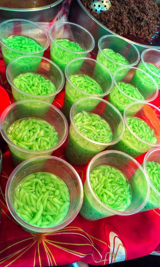 攤上擺滿一杯杯鮮綠怵目的巨型蝌蚪,酷老闆娘:「那是米苔目。」