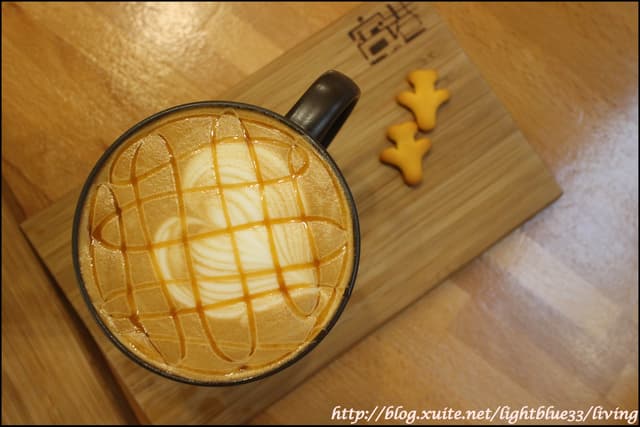 飲料先上,這是焦糖瑪奇朵,還有附兩塊飛機餅乾。老實說我對很多甜點店的飲料都不抱太大期望,可是窩巷的咖啡還真的頗有水準呢,喝起來香醇又順口,而且焦糖的氣味還不會蓋過咖啡香,就算不搭甜點品嚐,單獨來看也是一杯好喝的咖啡。