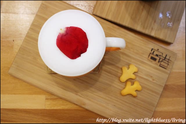 這是玫瑰熱牛奶,我對玫瑰真的不太有抵抗力,本來想說頂多就是玫瑰果露加牛奶,結果竟然還有一片新鮮玫瑰花瓣裝飾,讓我更是驚喜!