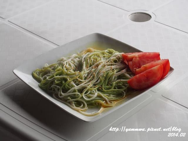 屢屢絲絲的麵線,像是一席白綢緞;屢屢絲絲的麵線,像是垂掛在空中無數條的五線譜,音符小精靈在滑走在線譜上……