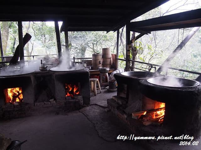 一進到裡面,看到四口灶冒著白煙,縱使是寒冷的冬天,就如同來到暖爐裡,熱氣沖天啊!