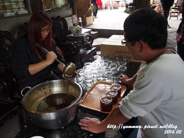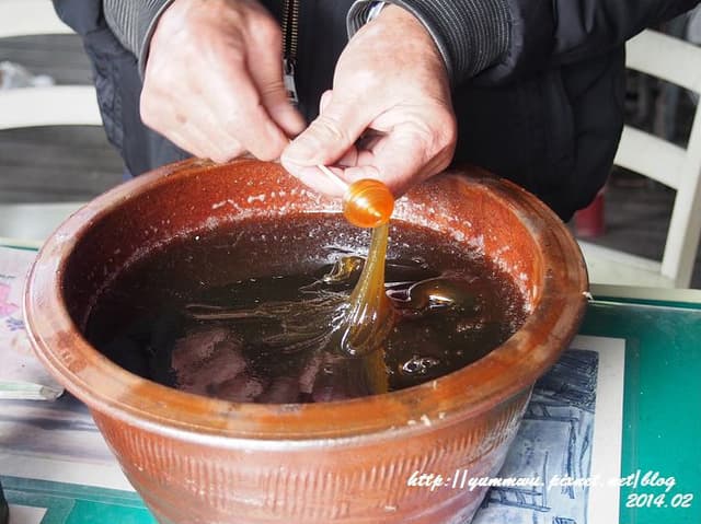 正常伯很親切的招呼我們來吃吃他的麥芽膏,看這一甕那金黃色澤與牽絲的麥芽膏,真有說不出的感動與吞了不少口水…….