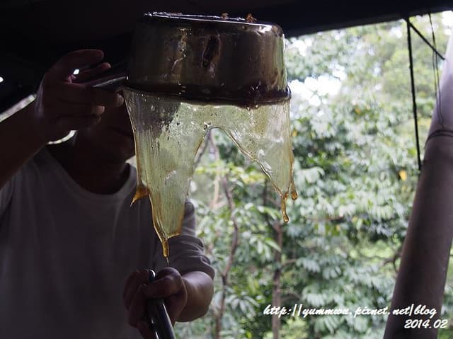 最後要憑靠經驗,看到麥芽撈起時不會直接滴下,像這樣的膏狀物,就是完成囉!