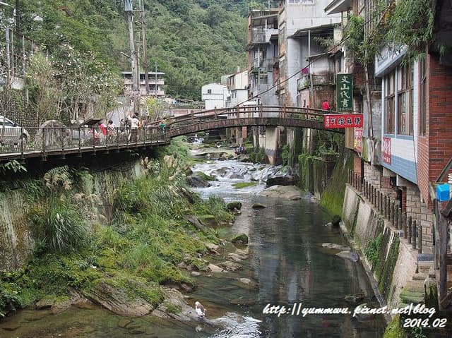 飯後在附近散散步,這裡最著名的就是「吊腳樓」的建築形式,日據時代居民為了解決腹地狹小所發展出來的特色建築,就是將建築一部分懸空撐起,靠溪側的房子都用柱子支撐起來,而在內側的「內街」被稱為「不見天」,是昔日商家進行交易買賣的地方。