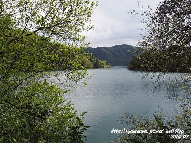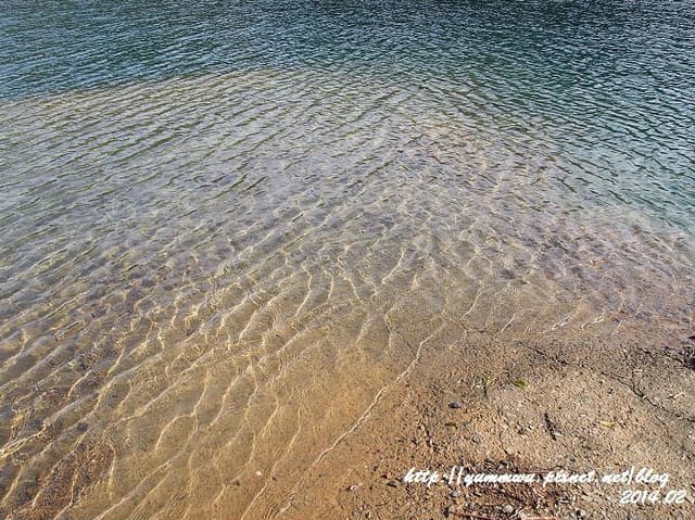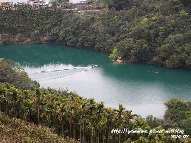 湖光繪影,在岸邊眺望湖面,湖色片片翠綠,在微風吹過的同時,波光粼粼又是不同色彩的變化,望著任一角度就是讓人想放空。