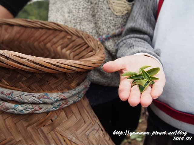 採完的茶葉都要放在簍子裡,採了一下下後,往裡一瞧…..驚要裝滿這一大簍到底要採多久啊……XD