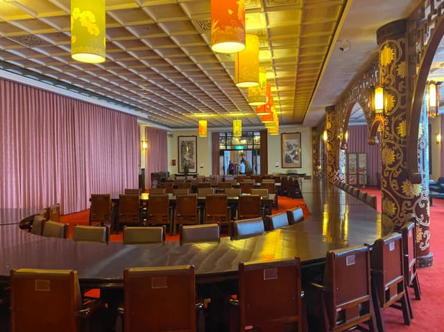是歷屆總統舉行國宴的地方,也是國民大會開會期間,國大代表用餐的場所,平常擺設餐桌 150 張,可容納 1500 位賓客。