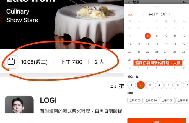 進入後點選你要預約的「日期」、「人數」、「時段」