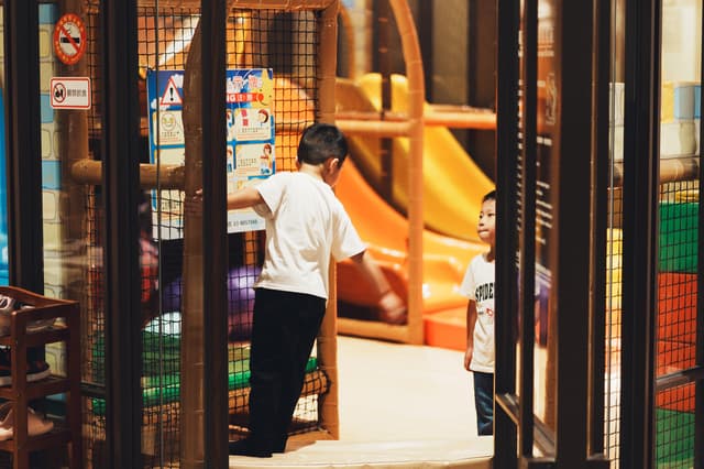 分為大/小兩區,滑梯、球池、攀爬架等安全設施齊全,小朋友可以在此盡情放電,家長也能在旁舒心休憩。