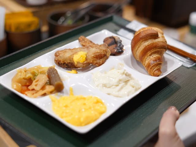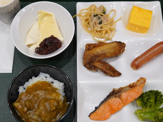 筆者覺得Super Hotel很用心的是,它們在各地的飯店,都有針對當地的風味料理去做準備,讓住客不用去外面名店排隊,早餐吧台上就可以享用到道地的名古屋美食 。例如我們去年在大阪Super Hotel品嘗到了章魚燒跟串炸,在Super Hotel Premier名古屋天然溫泉櫻通口,則是吃到了在地手藝的的手羽先(炸雞翅),一早就能有佳餚陪伴,實在很幸福。