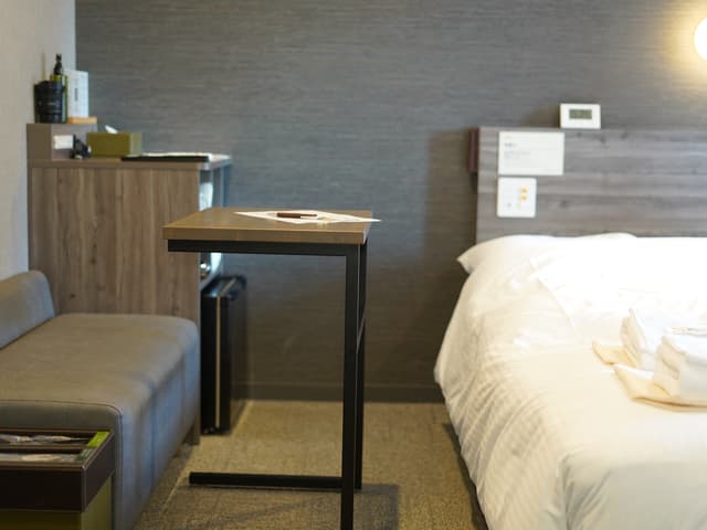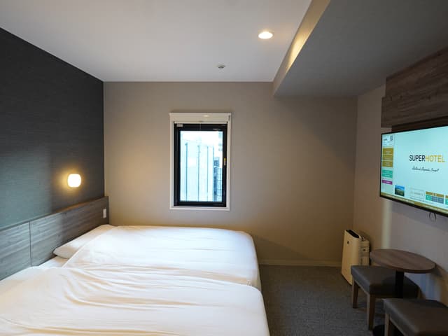 空間感: 雖然日本商務飯店的房間通常不大(此房型大小為18平方公尺),但 Super Hotel 的空間利用極佳。除了床鋪之外,房內也配置了桌椅和小型沙發,良好的坪效利用,讓小家庭的入住也不感到侷促。
