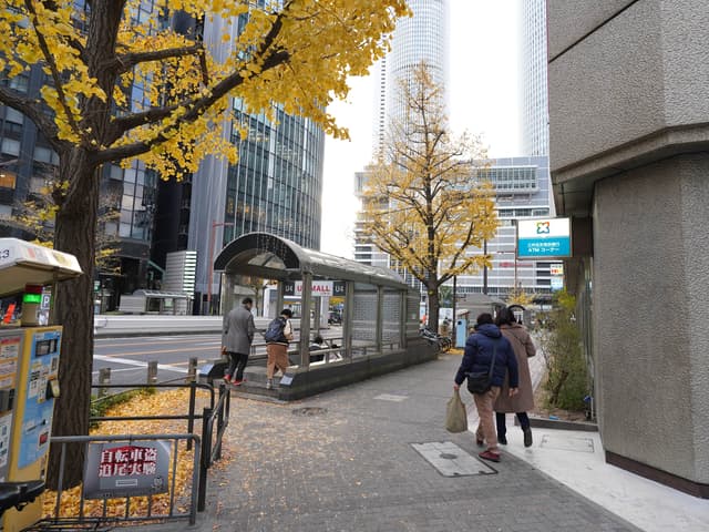 雖然飯店在「櫻通口」(車站東側),而搭乘青波線的入口在「太閣通口」(車站西側),看起來在對角線,但實際走起來很輕鬆。我們每天早上推著輕便推車,沿著櫻通口的大馬路散步到車站,穿越著名的「金時鐘」與「銀時鐘」通道。
