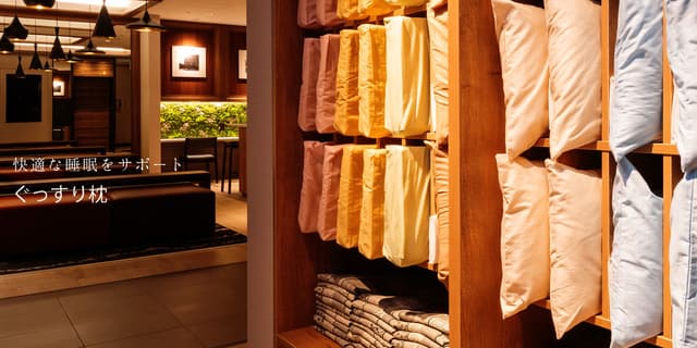 Check-in 時,櫃檯旁有一整面的「枕頭牆」,可以依據自己喜歡的硬度和高度挑選枕頭(因為太熱門,建議早點去挑)。另外,女性住客每天可以挑選 5 樣專屬備品(如面膜、髮圈、護膚用品等),太太對這點讚不絕口。