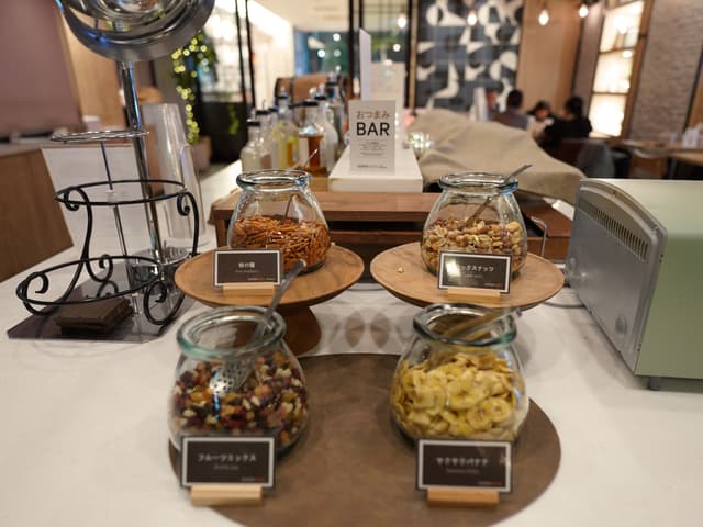 不只是簡單的茶水,還提供各式酒類(清酒、燒酒、威士忌、紅白酒)和軟性飲料供住客無限暢飲。