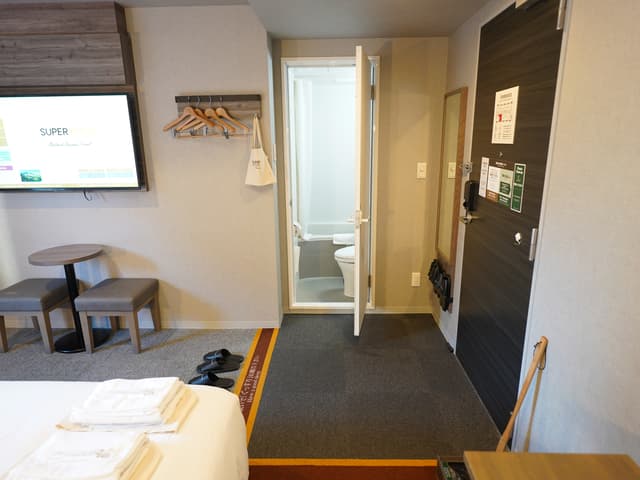 「Premier」系列的隔音效果比一般 Super Hotel 更好。入住期間,我們完全聽不到隔壁或走廊的聲音,這對於淺眠的長輩和需要早睡的小孩來說至關重要。房間內鋪設的不是傳統容易積塵的地毯,而是更乾淨的材質,對於容易過敏的兒子來說,這裡的空氣品質明顯讓人安心。