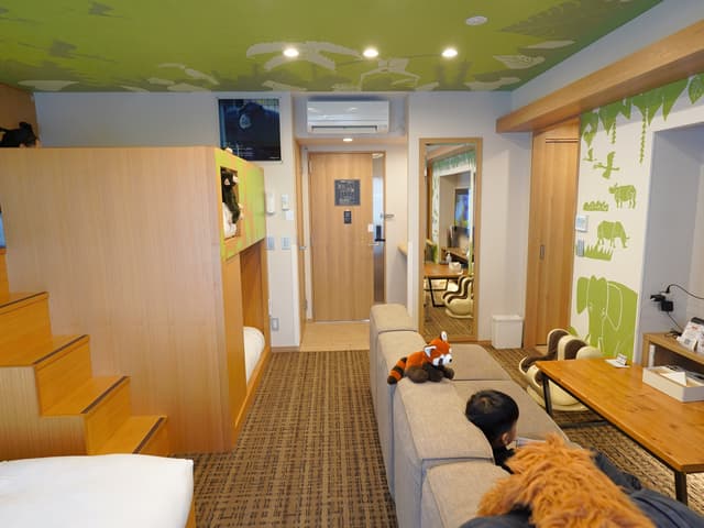日本飯店的「空間狹小」常是家庭旅客的痛點,但在 Gold Stay Nagoya Osu,這個問題完全不存在。我們入住位於六樓的「動物園文化室(Zoo Culture Room)」,一開門,全家人的眼睛都亮了。
