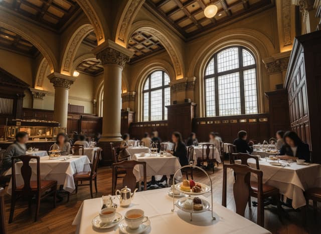 走進館內的 Café 1894,這裡曾是銀行的營業大廳,挑高的天花板與深沈的木質色調,瞬間將你拉回那個煤氣燈閃爍的年代。與倫敦許多已被改建得面目全非的古蹟相比,日本對這棟建築的修復展現了近乎偏執的考據精神——從磚塊的色澤到窗框的比例,無一不精準還原。在這裡享用一份下午茶,性價比極高,你不需要支付倫敦麗茲酒店(The Ritz)那般昂貴的帳單,卻能享受到更為靜謐、不受遊客喧嚷打擾的貴族氛圍。這不僅是一座美術館,更是一個讓現代人得以在繁忙都市中「暫停」的避世所。