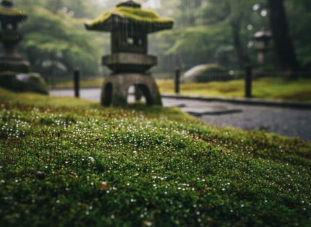 試想一下,在西芳寺那覆蓋著 120 種苔蘚的庭園中,雨水讓每一寸綠意都彷彿要滴出油來,那種視覺衝擊力被我稱為「綠色的暴力美學」。若與講究乾燥沙紋的龍安寺石庭相比,雨中的苔寺更像是一個會呼吸的有機體。對於攝影愛好者來說,此時的光線經過雲層漫射,是拍攝「新綠(Shinryoku)」的最佳天然柔光箱,無需任何濾鏡,你就能拍出國家地理雜誌等級的深邃質感。