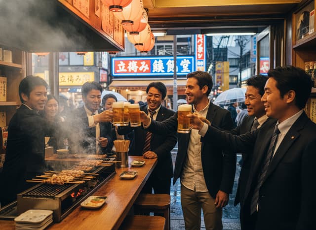 在立吞或酒吧,優先選擇吧台位置。先點一杯 Highball 或檸檬沙瓦,這是最通用的社交貨幣。