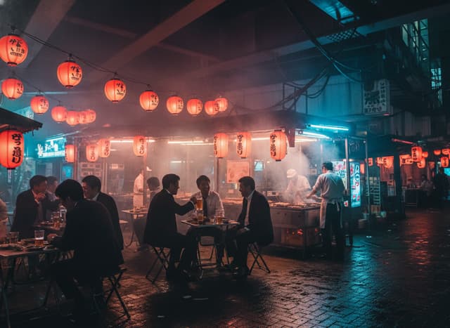 在新橋站高架橋下(Gado-shita)的煙霧中,花費約 2000 日圓,體驗日本企業戰士的避難所。這裡沒有精緻的擺盤,只有電車轟鳴聲中夾雜的對終身僱用制崩解的嘆息。推薦隨意走進掛著紅燈籠的小店,觀察周遭解開領帶的中年男子,這是觸摸東京最真實疲憊脈搏的入口。