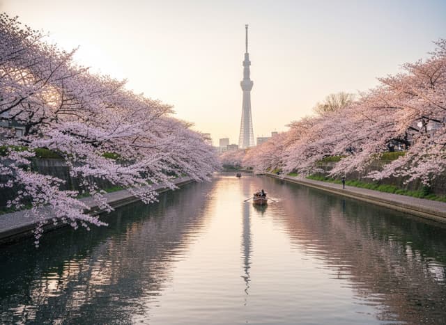 藏在東京市區的靜謐角落,遊客稀少。河津櫻與晴空塔的倒影在水面上相映成趣,構成極具東京感的現代畫面。帶上一杯咖啡坐在河堤,看電車緩緩駛過,是屬於城市旅人的午後偷閒時光。